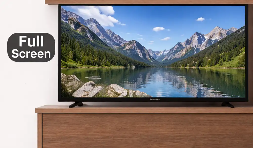 Soms kan de beeldgrootte op een Samsung TV verkeerd ingesteld zijn, waardoor het beeld niet correct wordt weergegeven. Dit is vooral merkbaar bij inhoud met bedienings-elementen; bijvoorbeeld wanneer je video van een laptop naar de tv streamt, kan het zijn dat de randen van het beeld buiten het scherm vallen.